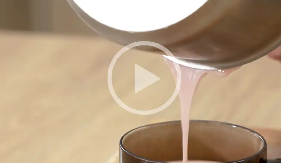 - Mélanger 30 secondes à l’aide d’un fouet jusqu’à ce que la boisson soit bien homogène